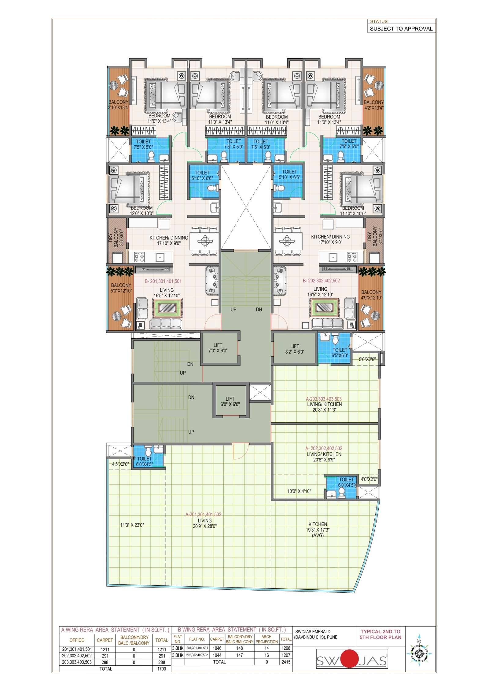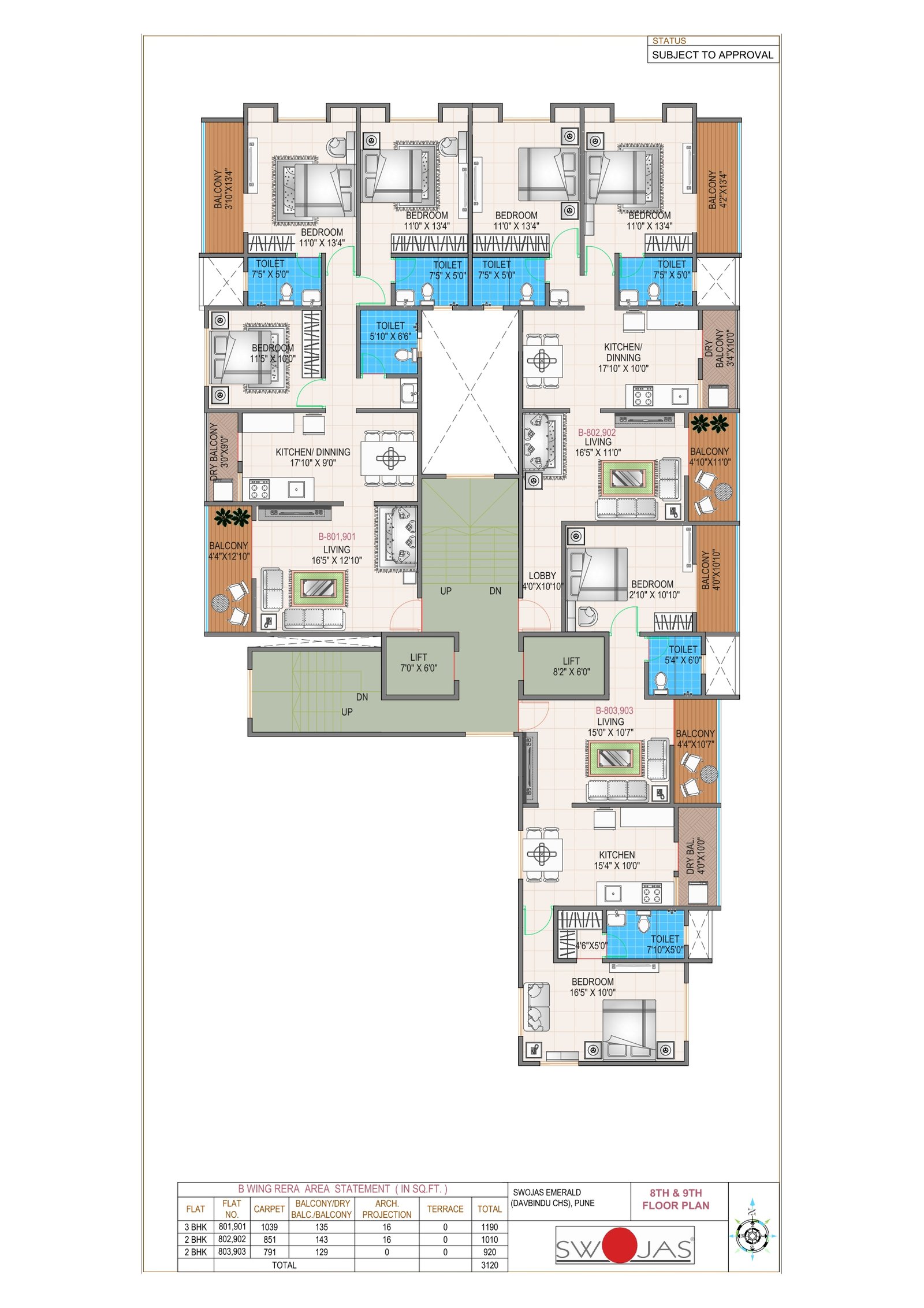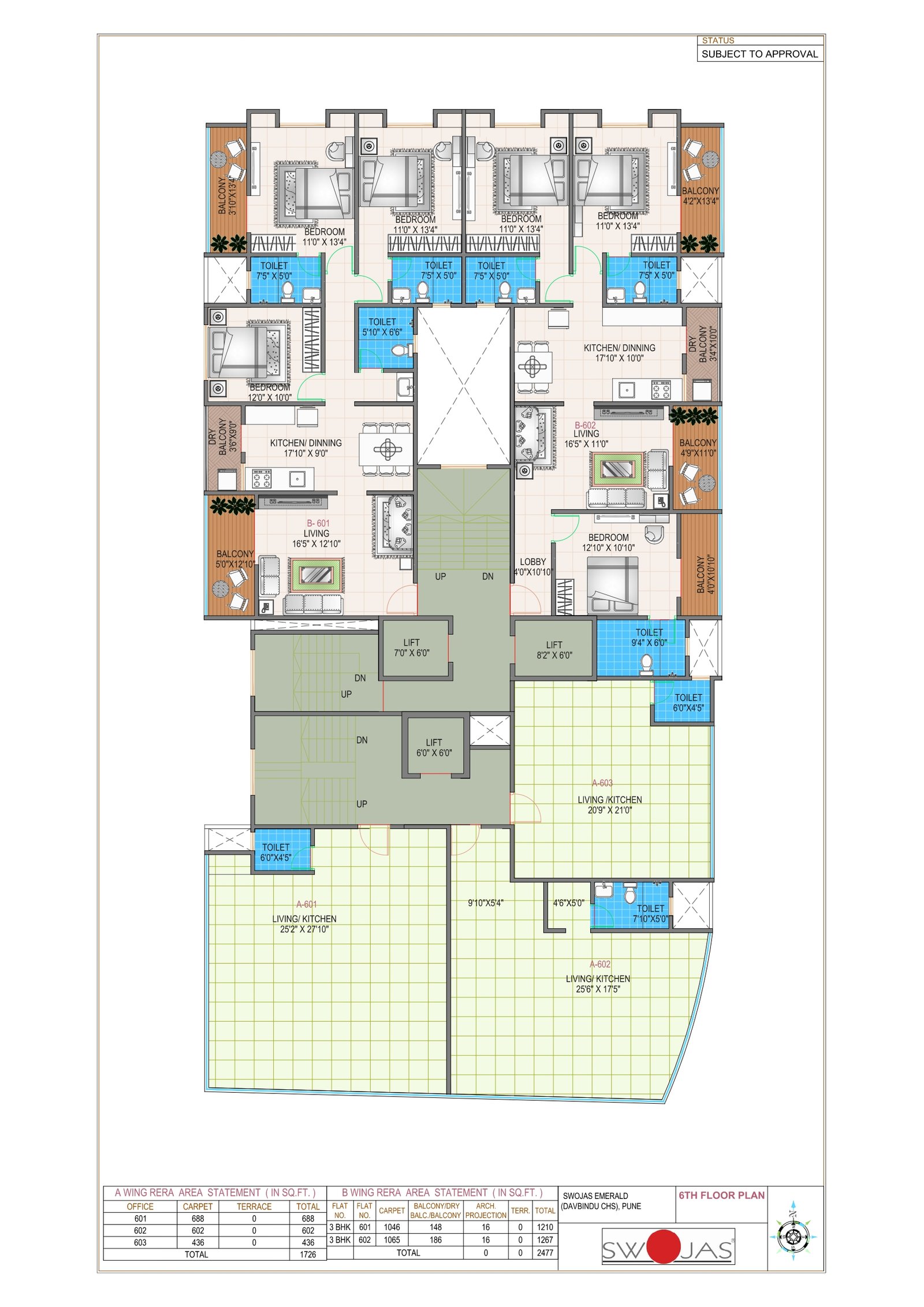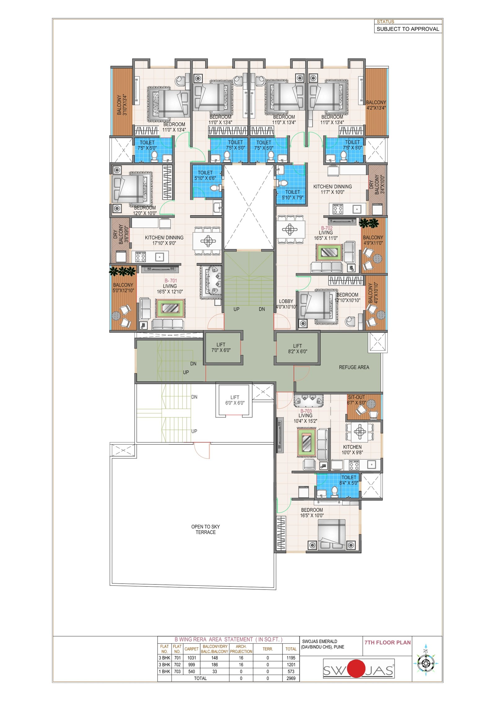 - Vitrified tiles flooring with skirting in living area, kitchen, all bedrooms. (Kajaria / AGL / Johnson or equivalent make)